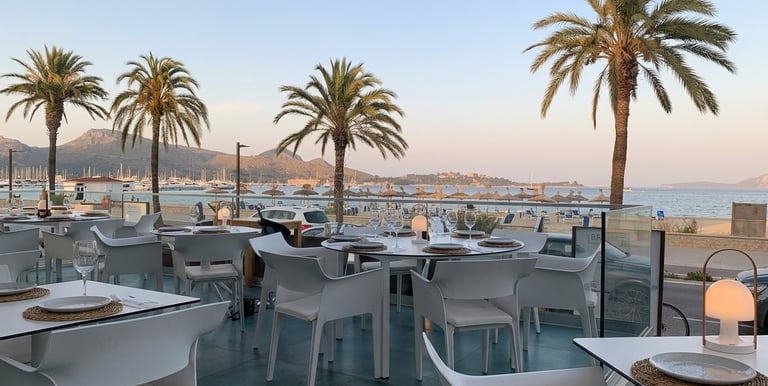 Restaurante en Port de Pollença donde el mar, la gastronomía mediterránea y el ambiente exclusivo se unen en una experiencia única frente a la bahía. Un espacio pensado para disfrutar de pastas, marisco, pescado fresco, cocktails y cenas especiales en una de las zonas más bonitas de Mallorca.